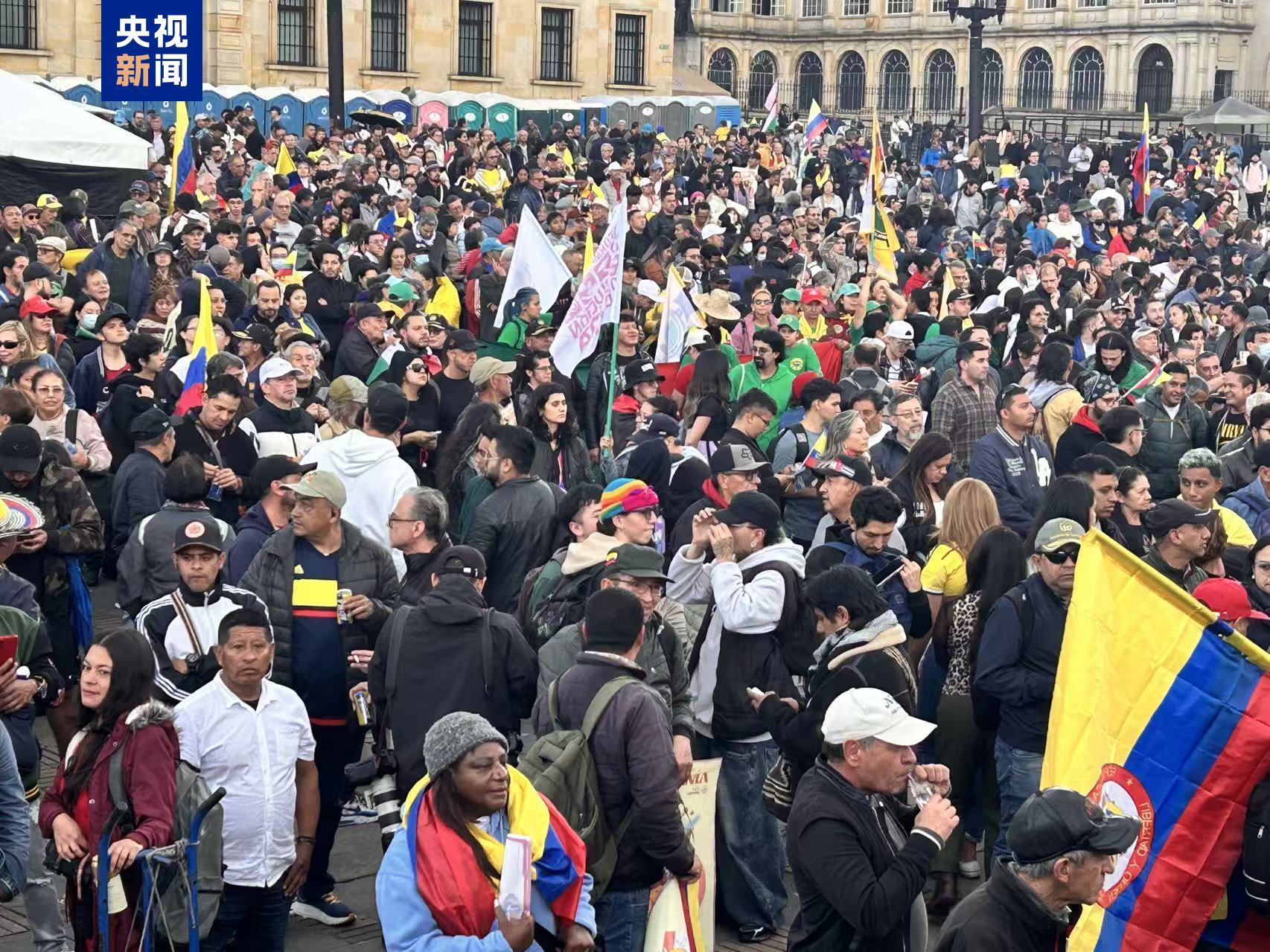 在哥伦比亚总统佩特罗的号召下,当时,哥伦比亚民众在各大城市地标建筑举行大规模游行示威。他们挥舞着国旗,举着“维护国家主权”等标语,抗议美国以所谓打击毒品为由,威胁对哥伦比亚采取军事行动。(总台记者 邓雪梅)